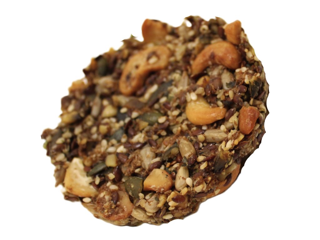 Složení: kešu BIO, dýňová sem., slunečnicová sem., lněná sem., psyllium, sezam BIO, kmín, sůl